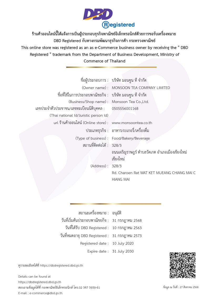 Enjoy browsing our fantastic selection of black tea, all grown in harmony with nature in Northern Thailand. From fruity blends to smokey and woody pure teas.