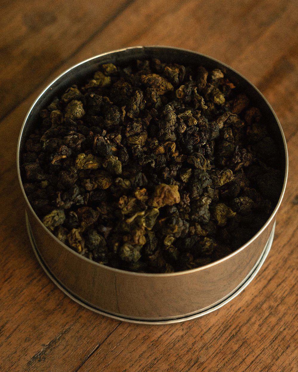 Artisan-crafted rolled oolong tea from the misty highlands of Chiang Mai, Thailand. Delicately floral with gentle fruity undertones, this tea offers a light and graceful aroma that captures the essence of the mountains in every sip.. / Light golden olive