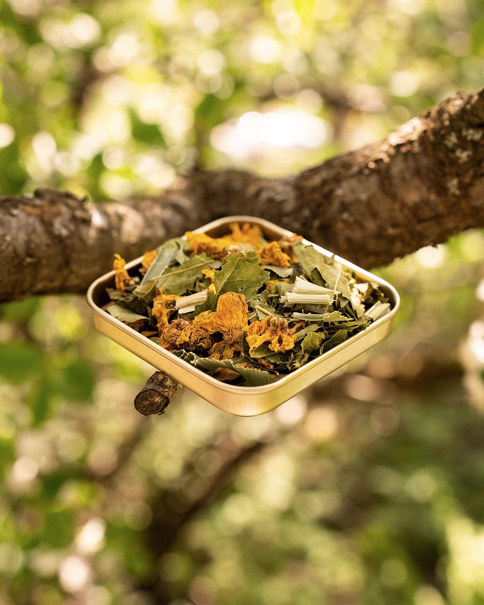 สัมผัสกับคุณประโยชน์จากชาสมุนไพรจากท้องถิ่นของเรา ซึ่งได้รับการรังสรรค์อย่างพิถีพิถันด้วยลูกหม่อน ดอกเบญจมาศ ใบเตยหอม และสตีเวียแสนหวาน จนได้เป็นชาที่สดชื่น มีประโยชน์ต่อสุขภาพ ช่วยกระตุ้นประสาทสัมผัสและบำรุงสุขภาพ / สีเหลืองมะนาวอ่อน