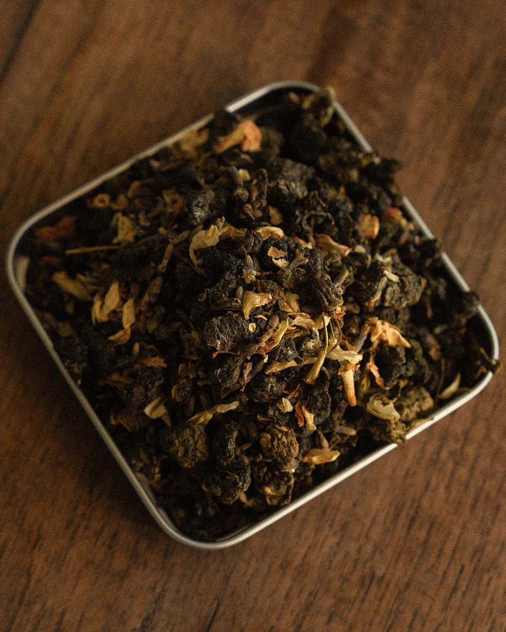 子鼠拼配茶为雅致宁神之作,凝萃茉莉薰衣草花雅与珠形乌龙醇滑底韵。微氧化乌龙构筑圆润基底,芳草薰衣草增添清雅草木升扬,茉莉透现蜜润花韵,薄荷精粹激扬清爽余韵。清盈而丰盈,此茶奉上静思澄明的盏中谧境 — 恰契焕新启思的隽永时刻。