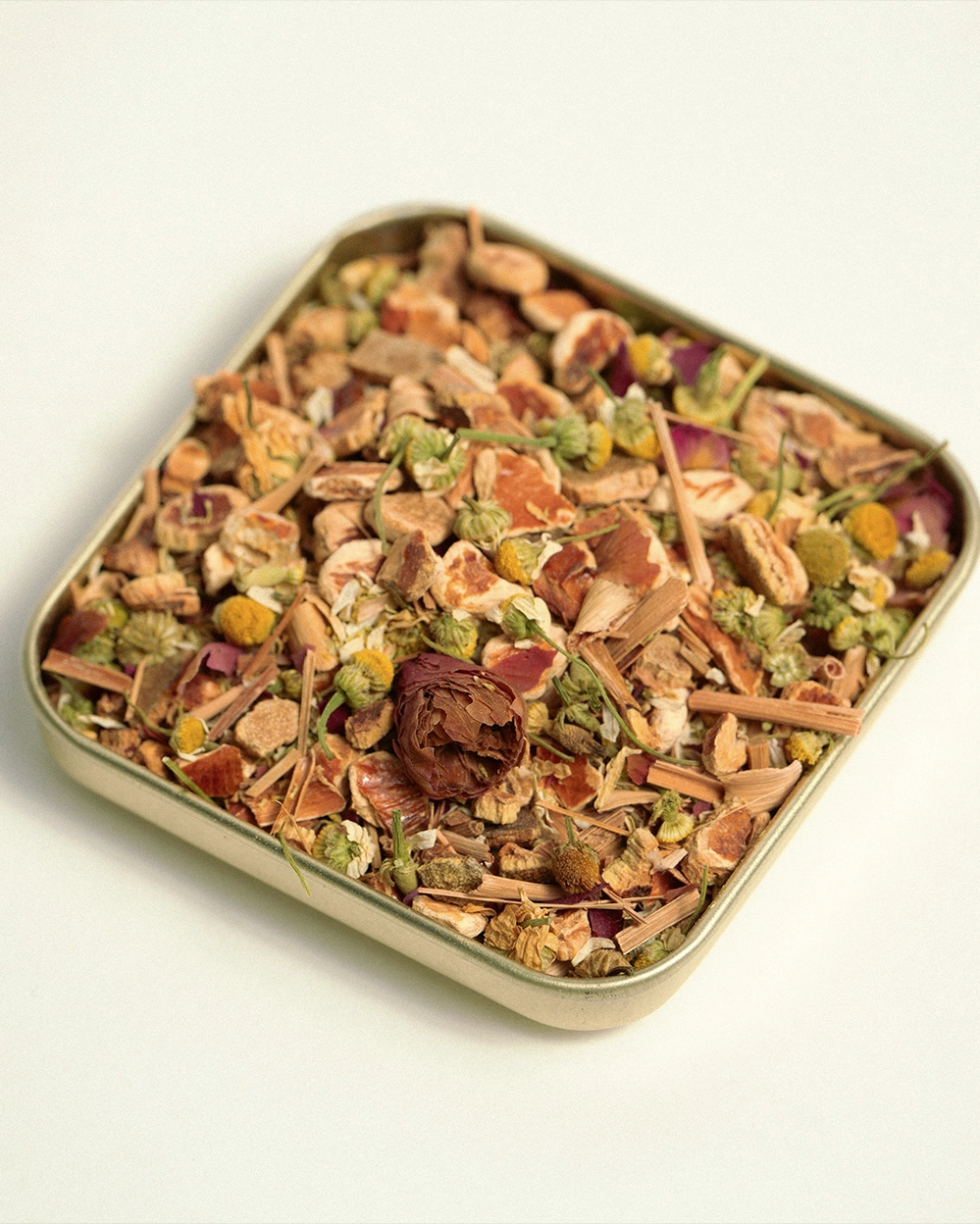 体验我们无咖啡因草本拼配的宁谧拥怀,匠心融萃芬芳柠檬草、宁神洋甘菊、甜润木橘与精致玫瑰花瓣。此和谐茶汤滋养身心,悦动感官。